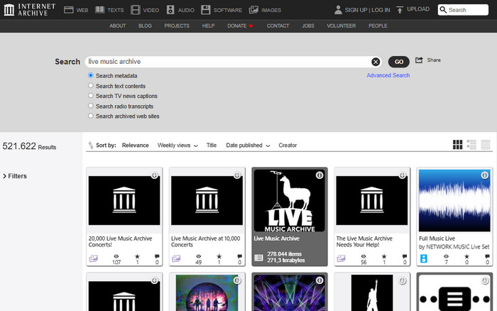 Neben Musik bietet archive.org eine riesige Bandbreite an archivierten Inhalten, darunter Webseiten (Wayback Machine), Texte, Videos, Software und vieles mehr.