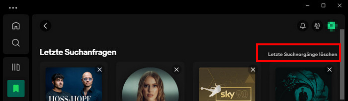 Schritt 4 Möchtest du deinen gesamten Spotify-Verlauf in der App oder im Webplayer löschen, klicke auf „Alle anzeigen“ rechts neben „Letzte Suchanfragen“. Wähle die erscheinenden Option „Letzte Suchvorgänge löschen”. Dann wird deinen Suchverlauf erfolgreich bei Spotify geleert.